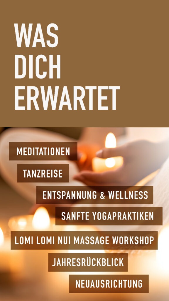 Mit kraftvollen Ritualen, tiefen Momenten der Entspannung und einem klaren Fokus auf Leichtigkeit begleiten wir dich auf deinem Weg in einen harmonischen Start ins neue Jahr.